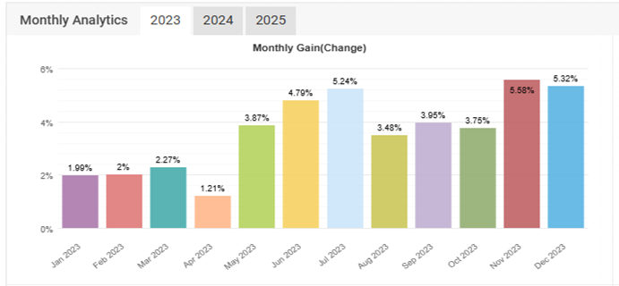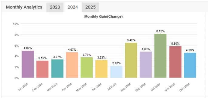 High Trading Activity: From January 2023 to December 2024, the platform executed over 10,600 trades, highlighting its efficiency and active engagement in capturing market opportunities.